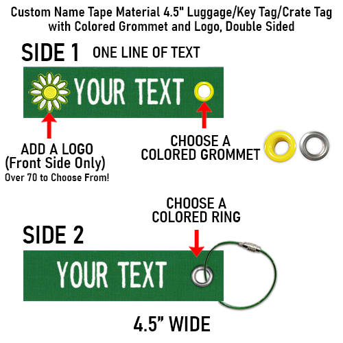 FRONT - ONE LINE OF TEXT NEXT TO THE LOGO, BACK - ONE LINE OF TEXT - NO LOGO